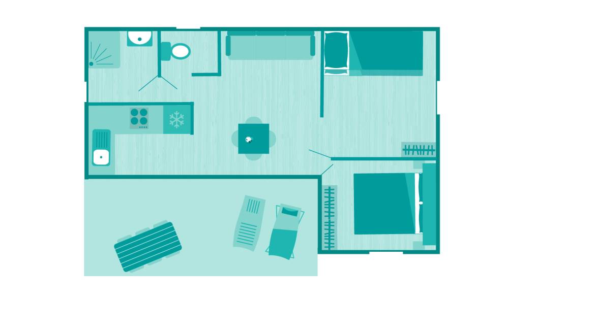 Questo alloggio è situato all'ombra, il che è molto apprezzato in caso di forte calore, ma un po' troppo buio per i vacanzieri che cercano sole e luminosità in bassa stagione.